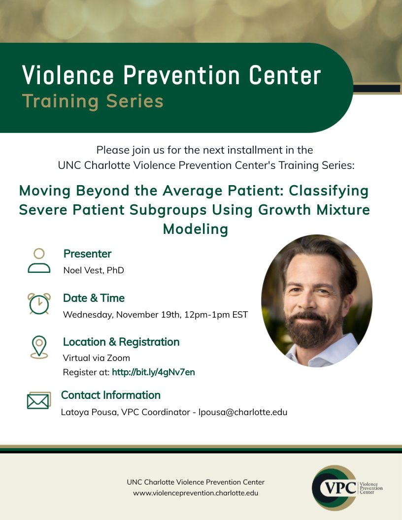 This training is ideal for faculty, behavioral health professionals, clinical researchers, graduate students in public health or psychology, correctional health practitioners, and violence prevention and intervention staff. This training is especially relevant for those seeking advanced tools to analyze recovery patterns and strengthen treatment strategies for high-risk populations.